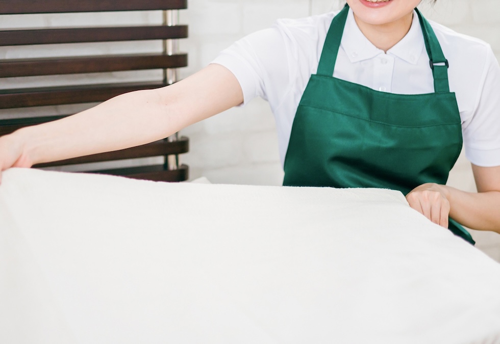 作業は、洗浄・乾燥・たたみなどの各工程が機械化されており、個々の担当業務をコツコツとこなす流れ作業が中心です。複雑な操作や重労働は少なく、どなたでも始めやすいのが特長です。仕事の詳細は事前に丁寧にお伝えするため、初めての方でも安心して取り組めます。